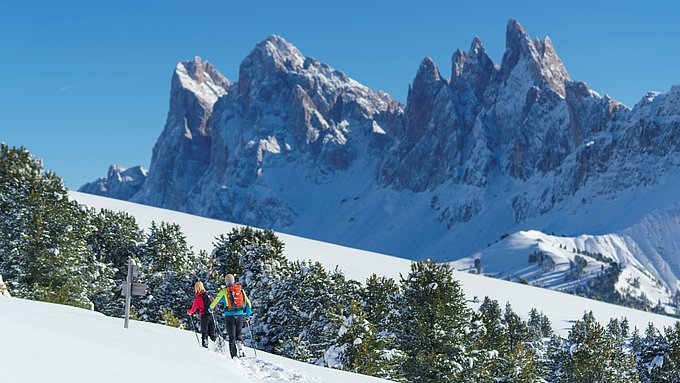 Die Bergwelt der Dolomiten ist das ganze Jahr über vielseitig erlebbar. Im Winter verwandelt sie sich zum größten Skizirkus der Welt. Das Dolomiti-Superski-Gebiet und die Sellaronda sind das Nonplusultra für Pistenfans. Und das Beste? Nur 15 Minuten vom Bergdorf Lajen in Südtirol entfernt. Wer des Winters stille Seite sucht, der findet sie: mit Schneeschuhen über glitzernde Hänge, auf Langlaufskiern entlang der Loipen, in Bergschuhen Richtung Almhütte und mit der Rodel wieder runter.